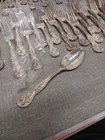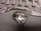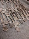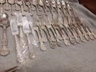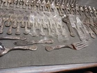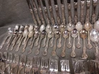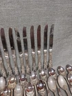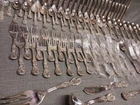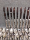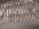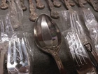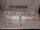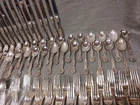 This set is in rough to good condition. They all need a good polishing/buffing. The finish is in rough condition. There are spots that the finish is worn through. Some of the pieces have more wear than others. There is some spotting/pitting some heavier than others. There are some pieces that have corrosion. This set includes the following: 21 dinner knives, 24 table spoons (1 still in the plastic), 24 teaspoons (2 still in the plastic), 24 dinner forks (4 still in the plastic), 24 salad forks (9 still in the plastic), 2 large serving forks, 1 large serving spoon, 1 ladle, and 1 spreading knife. Look at all pictures to see the condition. Free U.S. shipping on this auction.