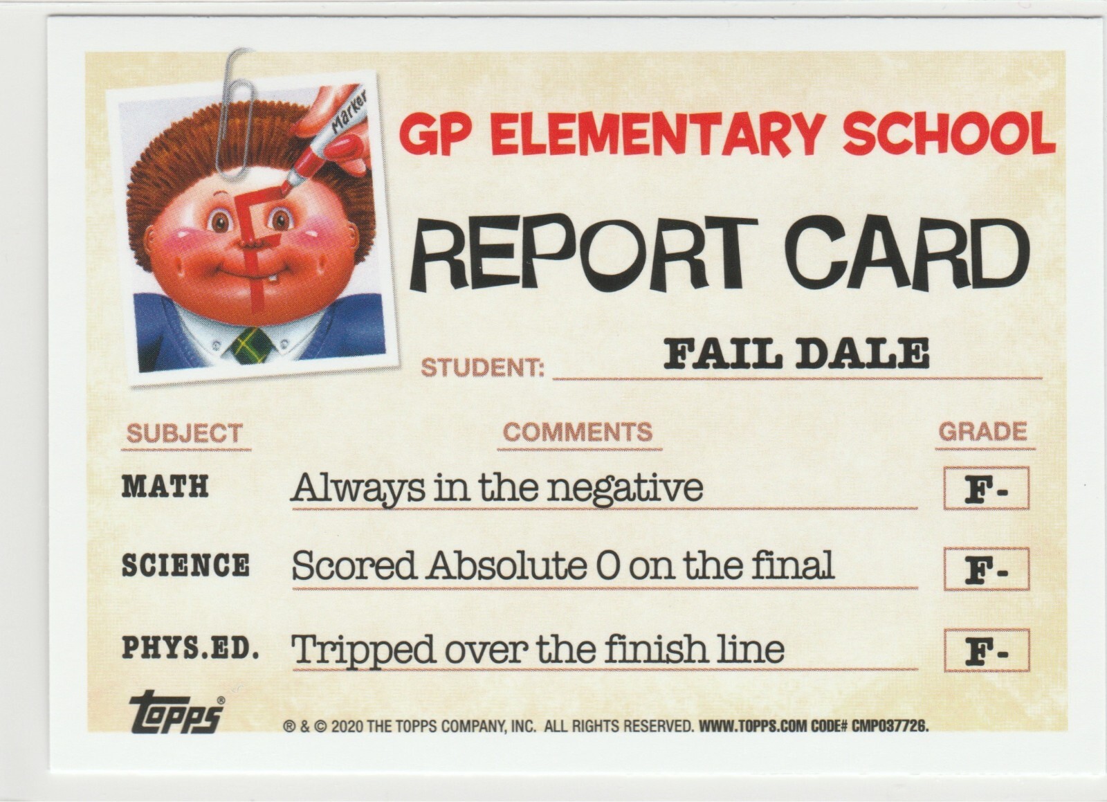 F Jeff #95b Topps Garbage Pail Kids GPK 2020 Late To School LTS personal stock images centering of cards may vary compared to listed images