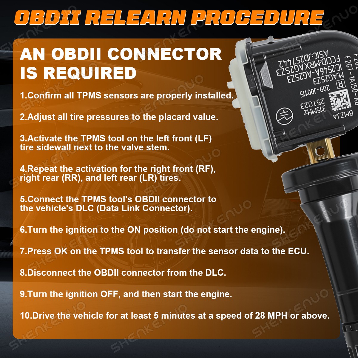 Fea tu res: High level of accuracy and sensitivity, enhance safety of your vehicle. Fit both the front wheels and the rear wheels, left and right sides. Original standard, directly replace your old one. Replacing OE numbers for reference are TPMS35, F2GZ-1A189-A, F2GT1A180AB and F2GZ1A189A. Fit for Ford F-150 Mustang Edge Explorer, for Lincoln MKX Continental. Specification: Condition: 100% Brand New Material: Metal +Plastic Color: Shown as picture OE: F2GT-1A180-AB F2GT-1A189-AB Interchange Part Number: F2GZ1A189A / F2GT-1A-180AB / FR3V-1A-180AB / F2GT-1A-150AB / FR3V-1A-150AB /(9L3T) / HC3T-1A180AB / 150AA Quantity: 4pcs Fitment: FOR 2015-2019 Ford F-150 FOR 2016-2019 Ford Explorer FOR 2015-2019 Ford Mustang FOR 2017-2018 Lincoln Continental FOR 2017-2018 Lincoln MKZ FOR 2016-2017 Lincoln MKS FOR 2016-2018 Lincoln MKT FOR 2016-2018 Lincoln MKX Package Included: 4 X Tire Pressure Sensor Optimized Installation Process: Deflate the Tire: Remove the valve cap and core to fully deflate the tire. Dismount the Tire: Secure the tire onto the tire changer and position the valve at the 1 o’clock position relative to the tire separation head. Use a tire tool to lift the bead over the mounting head and dismount the tire. Remove the Sensor: Using a screwdriver, remove the fastening screw and sensor from the valve stem. Then loosen the nut and completely remove the valve. Install the Sensor and Valve: Insert the valve stem through the valve hole on the rim. Secure the screw-nut with a torque of 4.0 Nm using a positioning pin for alignment. Attach the sensor body against the rim and tighten the mounting screw. Mount the Tire: Position the tire onto the rim, ensuring the valve is oriented 180 degrees opposite the separation head. Carefully seat the tire bead over the rim edge.