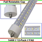 FAST DELIVERY - Ship from New Jersey or Los Angeles Warehouse via FedEx , 3-7 Days Delivered Your Door . SCIENTIFIC DESIGN - 8Ft LED Shop Lights Fixture is Made of 6500K Cold White SMD2835 LED Chip ,Plastic Clear Cover , Aluminum Bracket Housing ,and AC85-277V Constant Current Driver . It can work in -68F to 120F Temperature Conditions EASY INSTALLATION - The Integrated Tube Fixture Can be Install on Wall or Ceiling ,Easily Replace Traditional Fluorescent Tube Bulb . Plug and Play , Free Accessories (Power Cords, Connector , Extension Cords , Clip and Screw ) Come with Tube Lights Together WIDE APPLICATION - Linkable 8Ft Bulbs Widely Used in Garage Ceiling , Barbershop , Schools, Hospitals Basement , Factory Warehouses , Supermarkets Cooler Door , Offices, Shops,Hotels, etc FA8 T8 8FT LED Shop Lights Single Pin 144W LED Tube Light Bulbs 6500K 12PACK 【No RF & FM Interference】LED Driver have passed Electromagnetic Magnetic Compatibility EMC tests,No cause EMI ,No longer subject to any RF & FM jamming. Never interfering with the signal of your garage roller shutter door,No make noise when you listen radio 【Easy to Install】Just simply bypass the ballast and connection AC85-277V AC power . Not compatible with single-ended powered sockets 【Wide Application】 - 8Ft 144W V Shaped FA8 HO LED Bulb fitted to replace traditional F96T12 T8 T10 T12 fluorescent bulbs. Widely used in Garage,supermarkets, offices , convenience stores , gas stations , warehouse,parking lot,shops, hotels,Refrigerator,coolers or freezers illumination,etc 【High Output】8Ft 144W 18000LM FA8 【Rotate Cap & Swivel End】 Easy Adjust rotated Lighting Direction within 180 degree after Installation