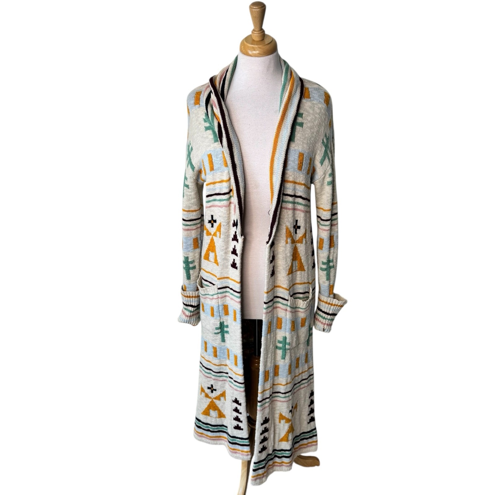 FAHERTY B. Yellowtail Paloma Duster Cardigan Southwestern Yellowstone River Size: XS Excellent Pre Owned condition- single owner. NOTE: DOES NOT COME WITH BELT. Previous owner cut off the belt loops. NOTE: DOES NOT COME WITH BELT. DOES NOT COME WITH THE BELT.
