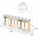 Keep your kitchen organized with the FEMELI Acrylic Spice Rack. This wall-mounted spice rack is made of clear, polished acrylic and features a modern, rectangular shape. It measures 3 inches in depth, 15 inches in width, and 2.4 inches in height, and comes in a set of three. Please note: this set is missing the pack of wall mount screws and one Rack. Everything else is included and brand new condition. Box 1