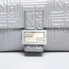 FENDI Leather Mamma Matelasse Shoulder Bag Silver Description Brand FENDI Item Shoulder Bag Color: Silver Size(CM) W27cm x H15cm x D4.5cm Height:15cm Depth:27cm Length:4.5cm Shoulder:58-46cm Size(Inch) W10.6 x H5.9 x D1.8inch Height:5.9inch Depth:10.6inch Length:1.8inch Shoulder:22.8inch Condition Status Rank A Condition Rank N Brand‐new/Unused Brand‐new item/Unused item S New old stock Near brand‐new item SA Unused old stock Near unused item A Mint-condition Mint-condition, slightly used item AB Near mint-condition Near mint-condition, some signs of a little wear B Good Some wear BC Item has some damages Please Note Please click the photos to enlarge, check each photo very carefully for its details. International Buyers Import duties, taxes, and charges are not included in the item price or the shipping cost. These charges responsibilities will rest with the buyers. Please check with the customs office in local to determine what these additional costs will be before bidding or buying. Other information the seller may like to remind: These charges are normally collected by the freight (shipping) company or when you pick the item up, please do not confuse them with additional shipping charges. We do not lower the values of the items or describe the items as gifts. According to the regulations of the US and the International government, this conduct is prohibited. The dispatch method All Items are sent from Japan.The package with tracking number is covered by shipping insurance. Return Policy We guarantee 100% authenticity and accept returns for 30 days after you received the item. If have any problems or not satisfied with your purchase, please contact us. SHIPPING We offer worldwide shipping via Express Mail Service (EMS) or DHL. Shipping fees will be calculated at checkout. A tracking number will be provided. CONTACTS Please contact us via eBay message. If you have any problem or question, please contact us ASAP.