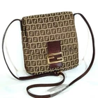$ 145.41FENDI Zucchino Canvas Shoulder Bag Brown Authentic I0516480