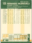 Card Number: 120 Type: Sports Trading Card Vintage: No Set: Fleer Star Stickers Country/Region of Manufacture: United States Manufacturer: Fleer Sport: Baseball Year Manufactured: 1987 Card Name: Base Stickers Card Size: Standard Player/Athlete: Fernando Valenzuela Original/Licensed Reprint: Original Team: Los Angeles Dodgers League: MLB Season: 1987 Autographed: No