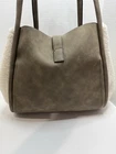 This FFC New York Women's Vegan Leather Sherpa Tote is a stylish and versatile bag perfect for any occasion. With a square shape and clasp closure, it's ideal for travel, casual outings, workwear, and business meetings. The bag measures 12 inches in width, 11 inches in height, and 5 inches in depth, making it a large size perfect for carrying all your essentials. The exterior color is a trendy khaki on white, with accents of faux shearling fur and gold hardware. The handle drop is 7.5 inches, with a strap drop of 19 inches, allowing for comfortable and convenient carrying options. The bag is made of high-quality faux leather, with a lining material also made of faux leather. The bag comes with additional accessories, including another strap and a pouch, making it a versatile and practical choice. Dimensions 20”W x 11.5” H x 7” D purse Pouch 13” W x 7.5” x 4.5” D