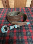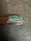 Signed FIJ 925 Sterling Silver Turquoise Inlay 4 Piece Belt Buckle Set. Buckle, 2 keepers and tip. Measurements provided in photos which act as description. Fits 3/4” belt. Very good condition. I don’t know if the tip was manufactured to open for removal but one end of the back strap is disconnected(photos provided). May have been constructed as such. I don’t know. I don’t see how it could have been removed from a belt had this not been done. At any rate, full disclosure. Hardware is currently installed on an Oil Tanned Harness Leather Belt, size 42. The ends are 3/4” wide and the body is 1.25”. The belt is 48” long. Very few pictures of the belt because I wanted to highlight the buckle set. The belt is in very good condition, solid brown. We aim to please! Thanks for looking!