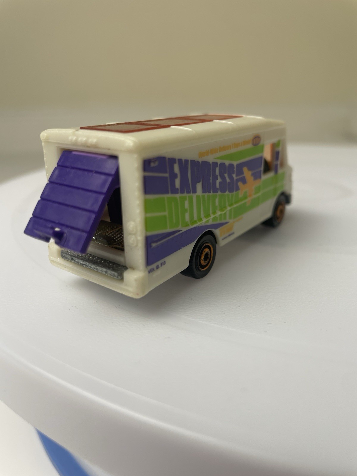 Made of plastic and measures approx. 3 inches long. Features an opening rear door and detailed body design from 2009. Used condition with visible scratches; note that a car axle from another toy is stuck inside. We can say it is delivering an axle. Lol. Great for Matchbox collectors, diecast displays, or as a play piece when paired with other vehicles and playsets. Suitable for collection display, nostalgic play, or model vehicle setups. instagram: nina_benok