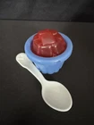 The Fisher-Price Fun Food Jello Squares Cup Dessert set from 1998 features a hard-to-find white flower spoon. This vintage Fisher-Price toy is part of the Fun Food collection and is a sought-after item for collectors. The set includes Jello squares in a cup, providing a fun and imaginative play experience for children interested in pretend play with food items. EUC