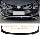 FITS 2021-24 TOYOTA CAMRY SE XSE PERFORMANCE STYLE GLOSSY BLACK FRONT BUMPER LIP FITS 2021+ TOYOTA CAMRY SE & XSE PERFORMANCE STYLE GLOSSY BLACK FRONT BUMPER LIP SPLITTER Fits ALL Models below: 2021+ Toyota Camry SE & XSE Models Will Not Fit Camry Models Before 2021, This Front Lip is for the Face-lifted Models Only! Will Not Fit LE/XLE Models Package Included: 1 Set of 3-Piece Performance Style Front Bumper Lip As Shown in Pictures. 100% Brand New Comes As 3 Separated Pieces, Hardware is Included. OEM Fitment with Pre-Drilled Holes for Easy Installation(Drilling is needed) Painted Glossy Black Finish Made of Durable & Light-Weight ABS Plastic Material Bring a More aggressive Front End to Your Camry Immediately Protect Bumper From Scratching & Improve Sporty Appearance All at Once *Installing Template is NOT Included, Professional Installation Is Highly Recommended*