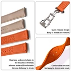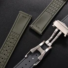 FKM Rubber Watch Strap Quick Release Clasp Universal Replacement Band 20/21/22mm Specifications Clasp Type: Folded Pin Buckle Band Length: Approx. 100mm + 105mm Band Material Type: FKM Rubber Item Type: Watchbands Buckle Material: Stainless Steel Watch Strap Thickness: 3–4mm Available Sizes: 20mm / 22mm (Buckle width: 18mm) Key Features High-Quality FKM Rubber: Durable, soft, and resistant to heat, sweat, and wear. Quick Release Spring Bars: Easy installation and tool-free strap changes. Folding Clasp: Secure stainless steel deployment buckle for a premium finish. Water & Sweat Resistant: Ideal for daily wear, sports, and outdoor activities. Comfortable Fit: Flexible yet strong rubber ensures long-lasting comfort. Notes 1-3cm size difference may occur due to manual measurements. Color may vary slightly based on lighting conditions. Please check your measurements before purchasing. Package Includes Selected Variation