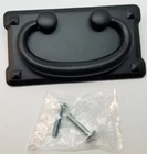 Flat Black Finish - Double Screw Mount Pull -- Mission Style DRAWER Handle Made from a strong zinc alloy die cast. Back Plate: 2" High x 3-3/4" Wide Centers - 3" Sold Individually - Each pull comes with two mounting screws. These mission style pulls come with three sizes.. single pull vertical, single pull horizontal and double pull horizontal. Each one also comes in four finishes. Antique Brass, Pewter, Flat Black and Distressed Black. See Pictures. FK-6038 (BL-0699)