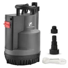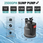 AUTOMATIC MODE: Once the sump pump is plugged in, it will automatically start when the water level is above 4" and shut off when it reaches the stop level of 2". When you start to use this pump, tilt and submerge it in water for a few seconds to expel the air inside MANUAL MODE: If the water level is not high enough to start in auto mode or you want to remove water as low as possible (1/5"), you can switch to manual control. The pump will keep running continuously and will not turn off automatically, so remember to cut off the power immediately to prevent the motor from burning out POWERFUL PERFORMANCE: 1/2 HP POWERFUL MOTOR ensures effective pumping. The pump has a maximum capacity of transferring water up to 2500 GPH with 1-1/2" discharge hose horizontally. It can lift water up to a maximum vertical height of 26'. This submersible pump works with clean water or slightly dirty water, and its bottom grid allows it to pass up to 1/5" solids SAFETY ENSURE & RELIABLE: UPGRADED SEALING STRUCTURE gives pump longer durability, which is much longer than regular mechanical seal. Full corrosion-resistant shell and THERMAL PROTECTION ensures the pump will not be burned out, even when the pump triggers thermal overload protector, the pump will rework after cooling down EASY INSTALLATION: Comes with three plastic adapters: GHT 3/4"+NPT 1" connects standard garden hose for quick installation; G 1-1/2" discharge port connects discharge hose for high capacity pumping WIDELY APPLICATION: Pump also comes with a 16.4-foot long cable cord and a 26-foot nylon rope, which allows the pump to submerge deep enough in the water. Ideal for heavy-duty draining applications including pools, ponds, pits, wells, ditches, basements, etc BUY WITH CONFIDENT: This pump is designed for multi applications and emergency use, like flooding basement, garden pond, hot tub, and so on. Provide lifelong technical consultation and 24h customer service
