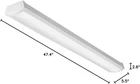 - The LED wrap is constructed of a metal housing with decorative plastic end caps. - Thermal formed diffuser is of highly transmissive material to minimize lamp image and provides highangle brightness control. - The 4 ft LED wrap produce 2,380 Lumens 3000K Bright White Color temperature and 50, 000 service hours. - Long-life LEDs, coupled with a high-efficiency driver, to provide extended service life. - For effective result use with non-dimmable switches, 120V - UL certified to US and Canadian standards. Listed for damp locations. ENERGY STAR certified. - Includes hardware to mount The 4 ft. Integrated led wraparound from mounts flush for wall or ceiling applications. This fixture comes with an impact resistant prismatic acrylic lens. This fixture is an ideal for traditional 2-light fluorescent T8 or T12 wraps. TRADITIONAL BUT MODERN: The FMLWL flush mount LED ceiling lighting fixture features a sleek, modern design with equivalent light output to traditional 2-lamp T8 wraparound; The LED lights deliver ambient lighting in your kitchen, hallway, , and more DESIGN: A white polycarbonate diffuser provides even illumination & softens the appearance of the LED light for a uniform appearance from below the ceiling; This flush mount light is a great closet light or garage light; 3000K warm white color temperature ENERGY SAVINGS AND LONG LIFE: Energy Star certified; Uses minimal wattage while providing the lumens needed to light a space; Long-lasting LED lighting technology maintains 70% of lumen output for 50,000 hours, over 22 years at 6 hours a day RATINGS: Design Lights Consortium (DLC) qualified; Suitable for use in damp locations such as laundry rooms or stairwells that are subject to moisture DIMENSIONS AND MORE: Dimensions - 47.4 in. x 5.5 in. x 2.6 in.; Designed for surface-mount ceiling or wall applications; Standard 120 volt, used in most residential applications; 0-10 volts driver for dimming down to 10 percent; 5-year limited