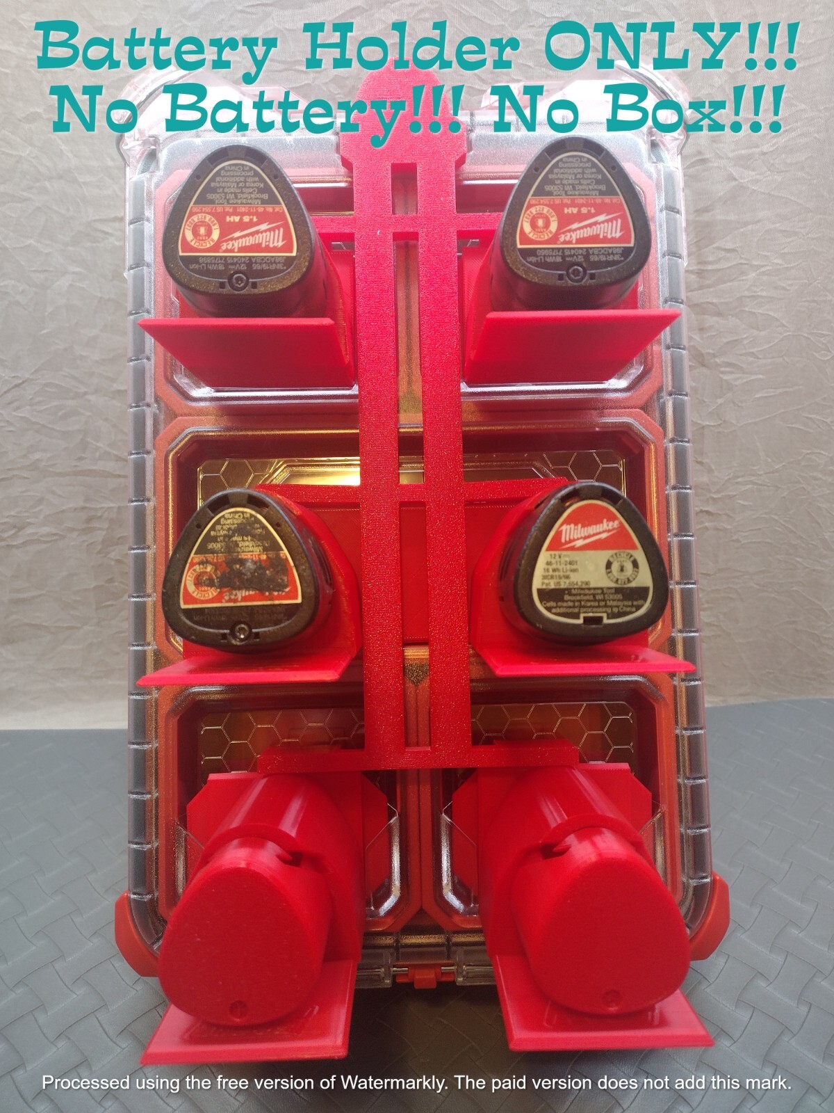 Top Rated Plus+ Seller, b uy with confidence!!! 100% Positive Feedbacks!!! 100% Brand New 30-day FREE RETURN 1-day handling time, ships daily US Seller ships from Chicago 1x Foam Kraft Packout Battery Brace 6x Foam Kraft Packout Battery Holders for Milwauke M12 Extremely modular with interchangeable holders between Dewalt, Milwaukee M12, Milwaukee M18, Makita, Ryobi, Kobalt, Craftsman, Flex, Bosch, Metabo, and many more. See my other listings for other holders. Made in the USA from Chicago, IL Perfect direct OE fitment for all 18V batteries They fit standard lithium cells, CP, XC, HD, HO, FORGE, and HIGH OUTPUT. Packout mount is direct fitment. Brace is included with this listing. Brace is not a must need just to avoid it from sliding. Listing is for battery holders and brace for Milwaukee Packout ONLY!!! Batteries and box not included!!! This is for the all red model. Feel free to message me if you have any questions. Also have other tool parts and storage in my other listings.
