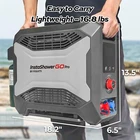 Specification Series: InstaShower GO Pro BTU: 22000 Battery: Rechargable (5000mAh ) Run Time (Full Charge): 80 Mins Charging Time: 4 Hours Wattage: 6.5 KW Maximum Flow Rate: 3.5 Liters Per Minute Voltage: 12 Volts (DC) Gas Supply Pressure: 11" W.C. (2.74kPa) High Temperature Control: 125 ℉ Ignition: Electric Ignition Product Dimensions: 18.2" X 6.5" X 13.5" Fuel Source: Propane Gas Connector Size: 1"-20UNEF Water Pump: 2 meters long, 30W, 8L/min Showerhead: 3 spray patterns Special Features: Portable, Digital Display, Lightweight, Overheat Protection, Tip-Over Protection Accessories: Water pump, showerhead, shower hose, magnetic base shower hook, 12V cigarette lighter power line, battery charger(120 VAC/60 Hz), Propane adapter hose, Pet shower sprayer About this item 【 Portable Shower System 】FOGATTI InstaShower GO Pro is a compact and portable shower system designed for outdoor use. Heated by propane, it provides hot water in seconds for showering, washing dishes, cleaning hands, and other tasks. It is lightweight and easy to store, making it an ideal companion for camping, hiking, and other outdoor adventures. 【 Easy Access to Hot Water 】With a heating output of 22,000 BTU, the InstaShower GO Pro Water Heater heats up fast within 8 seconds, and it can output 3.5 liters of hot water per minute. Set the temperature you need with the knob. The maximum temperature rise is 125°F. Innovative technology turns off the gas burner when water reaches 125°F to keep adults, kids, and pets safe from accidental scalds and burns. 【 Enjoy Showers Anytime, Anywhere 】The FOGATTI InstaShower GO Pro Portable Water Heater comes with a built-in 5000 mAh rechargeable battery, which eliminates the need for external power sources and can operate for 80 minutes on a full charge. This allows you to enjoy refreshing showers even at off-grid locations. It can also be charged by a 12V car cigarette lighter or a portable power station if you forget to recharge it, ensuring usability anywhere. *Please charge the battery for 4 hours at the first time to maximinize the performance of the battery. 【 All-in-one Solution 】The efficient brushless 12V pump with a 6.6 ft hose ensures reliable and consistent water pressure, delivering an enjoyable shower experience. Furthermore, the shower unit features an automatic ignition system for easy start-up and shut-down, allowing you to pause your shower without constantly turning the machine on and off, saving water and energy. The adjustable shower head with 3 spray pattern settings enables you to control the water flow according to your preference. A built-in gas regulator offers the flexibility to use either gas cartridges or gas cylinders via a hose (included). 【 Multi-Protections for Added Safety 】Besides overheat protection and flameout protection, the InstaShower GO Pro water heater is also equipped with tilt protection and dry burn protection. The flame will shut off if the tilt angle is too large or if it detects insufficient water flow. For added safety, the InstaShower GO Pro is constructed with flame-retardant materials, minimizing the risk of fire hazards. 【 Caution 】Exclusive for outdoor use. Not intended for residential or recreational vehicle purposes.