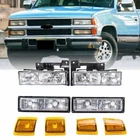 Specification: 1. Lens Color: Clear 2. Bulb Type: Halogen 3. Fitment Type: Direct Replacement 4. Housing Color: Chrome 5. Bulbs Included: No Fitment: For 1994-1998 Chevrolet C10 Pickup truck models only For 1994-1998 Chevrolet C/K 1500/ 2500/ 3500 truck models only For 1994-1998 Chevrolet Tahoe models only For 1994-1998 Chevrolet Suburban models only For 1994-1998 Chevrolet Silverado models only (Fits all models above with Composite headlights only) Package Includes: 1 x Pair of Headlights (Left and Right) 1 x Pair of Parking Light (Left and Right) 1 x Pair of Upper Corner Reflectors (Left and Right) 1 x Pair of Lower Corner Lights (Left and Right)