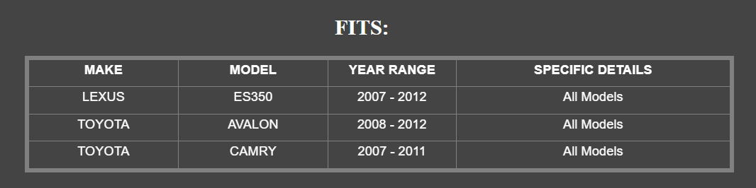 FOR 2007 - 2011 TOYOTA CAMRY GENUINE OEM REAR BRAKE KIT ROTORS PADS AND SHIMS Fits : 2008 - 2012 TOYOTA AVALON All Models 2007 - 2011 TOYOTA CAMRY All Models 2007 - 2012 LEXUS ES350 All Models Kit Includes the following Rear OEM Toyota Rotors, Rear TCMC Brake Pads & Rear OEM Shims Part #'s 42431-33150 (Rotors x2) 04466-AZ107 (Pad kit) 04946-06130 (Shim kit)