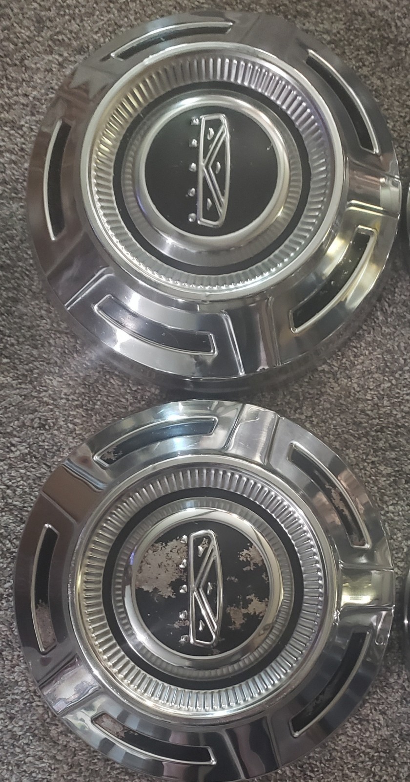 MAKE SURE THESE ARE THE DOG DISH HUBCAPS YOU WANT BECAUSE DO TO HEALTH ISSUES AND WAY TO MUCH STUFF I LIST AS : !!!! NO RETURNS !!!! ######################### OK YOUR BUYING THE SET OF 4 FACTORY VINTAGE ORIGINAL 12" in. DOG DISHES THAT ARE VERY HARD TO FIND THIS NICE ANYMORE ... THESE ARE FOR THE 3/4 TON 8 LUG RIMS THEY FIT ON THE 4 DIMPLES ON THE RIM OUTSIDE THE BOLT PATTERN .. IVE OWNED ALOT OF THESE OVER THE YEARS I THINK THESE ARE SOME OF THE BEST 4 IVE EVER HAD BUT AS ANY USED PART THERE SUPER NICE BUT ARE USED NOT PERFECT LIGHT SCRATCHING , VERY LITTLE DINGS COULD BE ON THEM BUT THESE ARE NICE, BLACK PAINT SPOTS NEED REPAINTED, ARE NOT PERFECT BUT STAINLESS PARTS ARE NICE ... JUST NOT FOR A PERFECT SHOW TRUCK IVE PUT ALOT OF NICE PICTURES ON AD SO YOU CAN SEE HOW NICE THEY ARE YES PICTURES WITH A HIGH DEF. CAMERA REMEMBER THESE SHINE VERY BRIGHT SO WATCH FOR REFLECTION FROM ROOM AND ME STANDING BESIDE THEM ... ASK QUESTIONS IF NEEDED PLEASE BEFORE BUYING ... I TRY TO SHIP ON THE NEXT DAY AFTER EBAY SHOWS PAID UNLESS ITS THE WEEKEND I SHIP MONDAY THEN ..SHIPPING COST LISTED IS FOR THE SHIPPING AND INSURANCE & SIGNATURE AT DELIVERY.. . THANK YOU FOR LOOKING !!!! INTERNATIONAL BUYERS SHIPPING IS FOR THE COST OF SENDING THEM TO THE EBAY GLOBAL CENTER ... THEN EBAY TAKES CONTROL THEY WILL CHARGE YOU SHIPPING, TARRIFS, TAXES SEPARATE FROM MY SHIPPING I HAVE LISTED ... THANK YOU