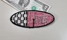 FORD MUSTANG MACH 1 Service Parts Dealer Uniform Patch DIMENSIONS: 4 7/8" x 2". DESCRIPTION: Vintage fabric patch. "Mach 1" with checkered flag. Black, red and white. Embroidered. CONDITION: This patch is in excellent original condition. No damage or wear. Never sewn on. No stains, soiling, discolorations. Very clean as found. No pet, cigarette or other odors.