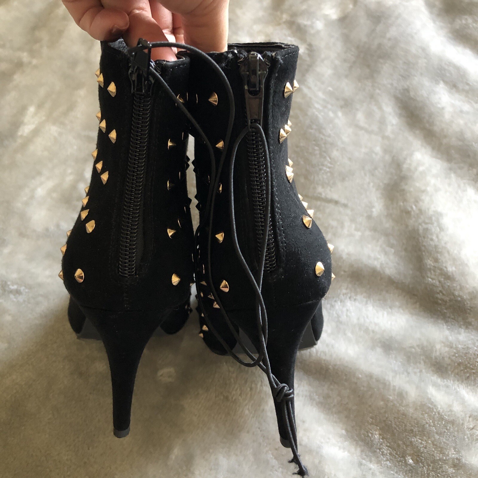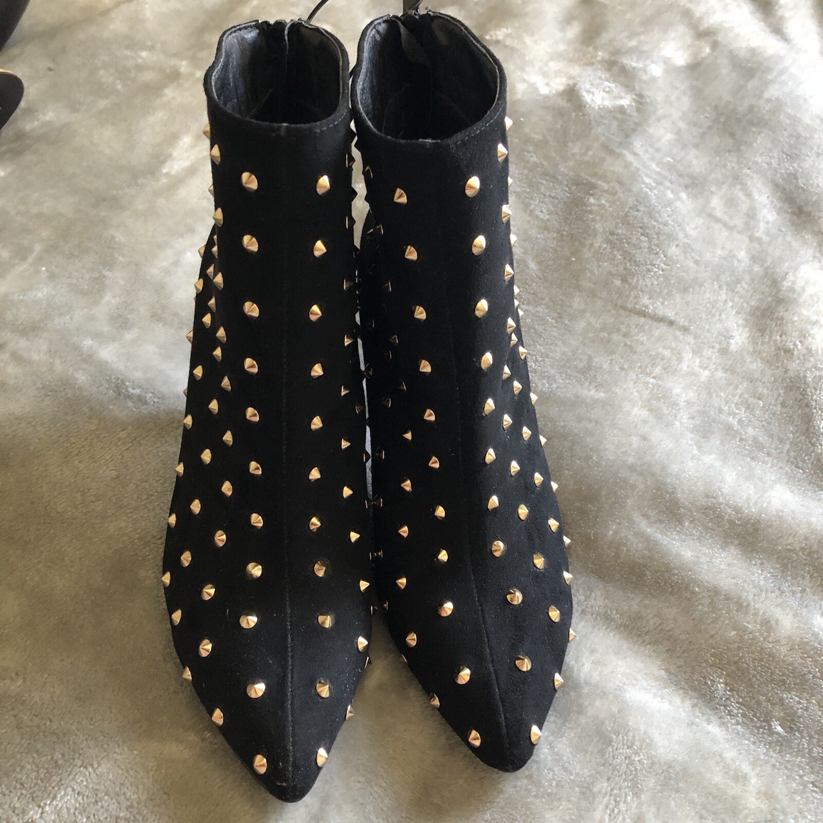 FOREVER 21 black gold stud ankle boots size 5.5 never been worn. FOREVER 21 black gold stud ankle boots size 5.5 never been worn / black micro suede with gold stud/ point toe with back zipper 3.5” heel height Final sale Casual, Falls, Spring, rocker, rocker chick, street, night out