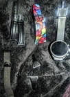 ---------⟨INCLUDED ITEMS:⟩------------- -1 Gen 4 Fossil Smartwatch Sport (FTW4019) -1 charging dock stand (USSKG4CDSB) -4 extra 18mm bands/straps: 1 leather slim black, 1 leather colorful feather print, 1 metal mesh, 1 jewelry cuff TOTAL BUNDLE VALUE: $270 (originally purchased for: $199 watch, $9.99 dock, $61 all 4 bands) Open to offers! -------------------------------------------- - - - -⟨FOSSIL GEN 4 WATCH INFO⟩ - - - - "Google Fossil Gen 4 Sport Smartwatch Wear OS Android, Heart Rate, Metal & Silicone, Touchscreen, 43mm, Swimproof, Grey/Black FTW4019 (UPC: 796483422728 / C2F912301504)" - - [WATCH SPECS] - - MODEL: Fossil FTW4019 SERIES/ GEN: Fossil Q series, Gen 4 Sport UPC: 796483422728 CASE: Metal, Round, 43mm diameter, 12mm thick, silver color BAND: Silicone, Smoke/ gray color, 20mm width PROCESSOR: Qualcomm Snapdragon Wear 3100 OPERATING SYSTEM/ COMPATIBILITY: Wear OS by Google > Compatible with Android OS 4.4+ and iOS 9.3 Number on back of watch: C2F912301504 CONNECTIVITY: Wireless- Bluetooth Smart Enabled / 4.2 Low Energy and NFC technology NOTIFICATIONS: Alarm Clock, App Alerts, Calendar, Email, Multiple Time Zones, Social Media, Text messages FUNCTIONS: Control Your Music, Google Pay, GPS, Heart Rate Tracking, Interchangeable Watch Band, Personalise Your Dial, Swimproof - - [WATCH FEATURES] - - •Touchscreen functionality, Digital display •Heart Rate Monitor •Swimproof/ Water resistant depth: 165ft •GPS, Sensors: accelerometer, gyroscope, altimeter •Comprehensive monitoring of: distance, calories, heart rate, steps taken •Wear OS by Google: App notifications (smartphone , SMS, enail, social, calendar apps), Google Pay, Google Assistant with microphone, music storage & controls •Custom goal & alarm settings, multiple time zones, Calendaring •24hr battery based on usage /rapid charging up to 80% in 1hr •Lightweight, customizable watch faces, interchangeable with other 16mm bands •Vibrate mode •Built-in microphone - - [WATCH DESCRIPTION] - - "Gen 4 Sport Smartwatch is part of the Fossil Q series with features to help you stay on top of your health. This ultra-lightweight 43mm watch features a smoke silicone strap, lets you track your heart rate, track your workout (even swimming), customize your dial, view notifications at a glance and more. The Bluetooth and Wi-Fi capabilities make it easy to integrate your favorite applications, while the interchangeable band offers a host of customization options." - -[WATCH PRICE/ CONDITION] - - Smartwatch and dock are in excellent used condition: everything is fully functioning, no clear damage, and barely used. A few tiny scratches around edge of silver casing can be seen from side but not noticable when on wrist and superficial marks- shown in last photo. No other evident wear or issues with the watch. Original boxes unavailable, watch Instruction pamphlet included. Watch works perfectly, setup with Wear OS app PRICING: Originally purchased $199.00 ------------------------------------------- - - - -⟨CHARGING DOCK INFO⟩- - - - "Soarking Charging Dock/Stand black, 5 Ft Cable, 5 Volts, 10 watts USSKG4CDSB" - - [DOCK SPECS]- - Model #: Soarking USSKG4CDSB UPC: 714449588578, ASIN: BO7S2NDVL6 Connectivity: USB/ total Ports: 1 Current Rating: 1 Amps Output Voltage: 5 Volts Wattage: 10 watts Power Plug: Type A-2 pin, Source: Corded Electric FEATURES: Fast Charger, Magnetic, Short Circuit Protection, overvoltage/overcurrent/overheat/short circuit protection. Magnetic mount, Case Friendly and Charging at Portrait Orientation View, long 5 ft cable Compatible models: Fossil Gen 6/5E/5 carlyle men, Fossil Gen 5 julianna women, Fossil Sport,Fossil Gen 4 Explorist HR,Venture HR,Emporio Armani, MK Runway,Sofie Heart Rate,Diesel ON Fullguard 2.5 Smartwatch DZT9001, Skagen falster 3/2,Kate spade scallop 2, Misfit vapor 2. ----------------------------------------- --⟨BAND/ STRAP DESCRIPTIONS⟩-- ⟨FLORAL HOLLOW OUT JEWELRY CUFF BRACELET⟩ "TRUMiRR 18mm Jewelry Cuff Bracelet Black Stainless Steel" (like new/ no wear, +extra pins »paid $15.75) ⟨MAGNETIC METAL MESH BAND⟩ "Jurich Adjustable Magnetic Stainless Steel" (Good used condition-only few scratches on band, +extra pins »paid $14) ⟨THIN NARROW BLACK LEATHER BAND⟩ "OenFoto Quick Release Slim Thin Narrow Small Leather-18mm Black" (Like new, no wear »Paid $14.99) ⟨COLORFUL FEATHER DESIGN LEATHER⟩ "ENDIY Soft leather 18mm -Blue Lovely Cute Flower Floral Pattern" (Good condition, Slightly bent from storage but curved to fit wrist »Paid $16.60) PRICE: $61 total paid originally for all 4 bands ----------------------------------------