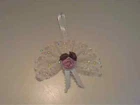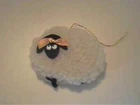 FOUR ADORABLE VINTAGE 1960'S HANDMADE CHRISTMAS ORNAMENTS ALL IN VERY GOOD CONDITION. ALL IN EXCELLENT NEW CONDITION. (2) SHEEP WITH GOOGLE EYES - 3 1/4" WIDE VICTORIAN FAN FELT TEDDY BEAR - 5" LONG PACKED AWAY FOR OVER THIRTY YEARS