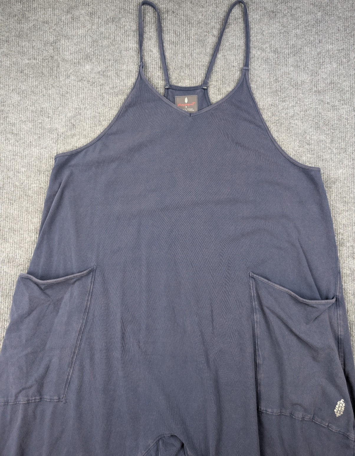 Number of Pieces: 1 Piece Seller Notes: “Good pre-owned condition with normal wear.” Size Type: Regular Closure: Pullover Fit: Relaxed Leg Style: Tapered Theme: Athleisure Vintage: No Pattern: Solid Garment Care: Machine Washable Sleeve Length: Sleeveless Type: One-Piece Brand: Free People Style: Jumpsuit Material: Cotton, Cotton Blend Neckline: V-Neck Handmade: No Color: Blue Size: S Sleeve Type: Strappy Sleeve Season: Summer, Spring, Fall Accents: Logo Department: Women Occasion: Casual Country of Origin: Vietnam Character Family: One Piece