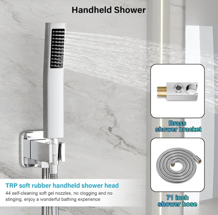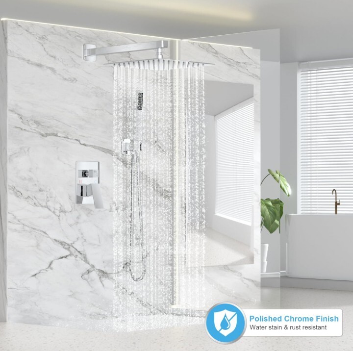 Upgrade your bathroom with the FPXRNG Shower Faucet Set, perfect for any home shower. This set includes a 12-inch square shower head and handle, with a brushed silver finish that adds a touch of modern elegance to any bathroom decor. The shower head is designed for easy installation and use, and is suitable for showers only. The package dimensions are 16.34x12.87x5.79 inches, and the set weighs 9.44 pounds. Please note that this item cannot be shipped to California and Colorado. Make your shower experience more enjoyable with the FPXRNG Shower Faucet Set, a must-have for any home bathroom.