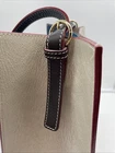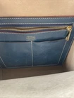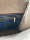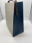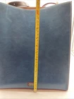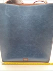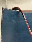 This beautiful Frances Valentine shoulder bag in blue and white color block design is the perfect accessory for any occasion. Made of high-quality leather with a cowhide finish, this bag features a open top closure, adjustable strap, and detachable strap for added convenience. The bag is large in size, measuring 12" in width and 13.5" in height, with a depth of 6". The bag's exterior is adorned with gold-plated hardware and a buckle accent, while the interior is lined with white suede leather and leather. The bag also features inner pockets for added organization. The bag's handle/strap is made of brown leather and has a handle drop of 13". This designer bag is perfect for travel, parties, cocktail events, and casual or business settings. Very good condition!!! There is one slight scuff mark but otherwise the bag is in great used condition. Please check out the pictures and let us know if you have any questions Thanks for shopping!!!