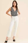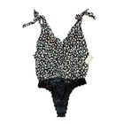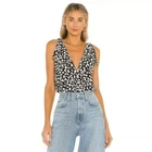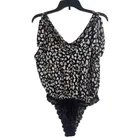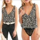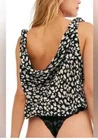 Free People Bare it All Tie Strap Bodysuit Animal Print Size Small Brand New With Tags Brand: Free People Department: Women's Size: Medium Color: Black, tan, and white Style: boho bodysuit Fit: relaxed Closure: tie strap & snap crotch Neckline: v neck and cowl back Sleeve Length: sleeveless Pattern/Print: animal Material: viscose, lace: polyamide, and elastane Condition: New with tags Features: - unlined - thong bottom - airy woven lightweight fabric - drapey cowl back - billowy bodice Care: - Hand wash - lay flat to dry Tags: boho, bohemian, flowy, drapey, light, summer,