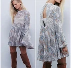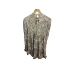 This is a Free People overall dress in size XS with a bohemian theme. It features a Victorian paisley pattern in taupe lace fabric, giving it a romantic and flowy style. The dress is beige in color and falls at a mini length. Perfect for those looking for a boho-inspired piece with a touch of vintage charm. In excellent condition length 29" chest width 14" All Measurements Are Approximate Please email us with any questions! ** LIKE THE ITEM BUT NOT THE PRICE, REASONABLE OFFERS ACCEPTED