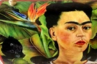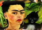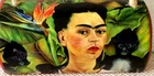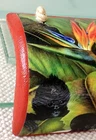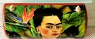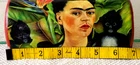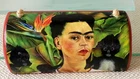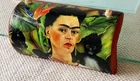 FRIDA KAHLO & FRIENDS, HAND-PAINTED DECOUPAGE MEXICAN TERRA-COTTA WALL HANGING (ROOF?) TILE. DEPICTS KAHLO WITH THREE BLACK BABY MONKEYS AND A BEAUTIFUL LUSH BACKGROUND OF GREENERY & BIRD OF PARADISE FLOWER. TILE MAY POSSIBLY BE RARE? NO IDENTIFYING MARKINGS OR DATES. READY TO HANG FROM ATTACHED JUTE ROPE. MEASURES: 3.5"H X 6.5"L. CONCAVE (NOT FLAT) IN SHAPE. CONDITION: VERY GOOD PRE-OWNED. NO ISSUES. PHOTOS PICKED UP GLARE, BUT COLORS ARE BOLD & BRIGHT. QUESTIONS ARE WELCOME. SALE IS FINAL.
