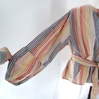 FRNCH Capucine Blouse Womens M Career Polished Mature Resort Wear Vacation Beach This blouse is like a rainbow's sophisticated cousin, perfect for those who want to look effortlessly chic while also resembling a fashionable beach umbrella. The waist tie adds a touch of Parisian flair, ensuring you're both stylish and securely wrapped up, like your favorite burrito. • Button front closure • Long sleeves • Waist tie for adjustable fit • Lightweight cotton fabric • Made in India Features: • career, polished, mature, resort wear, vacation, cruise wear, summer, beachy, night out, weekend, casual, parisian chic, classic Size: Womens M Approximate Measurements: Length from center back 25 in / 64 cm Bust flat lay 24 in / 61 cm Sleeve from neckline 29.5 in / 75 cm Sleeve from shoulder seam 23 in / 58 cm Shoulder to shoulder 16.5 in / 42 cm Condition: New With Tags New with tags, see photos for details.