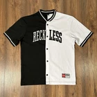 FSBN American Sports 1992 Reckless Button Up Mens Jersey Black USA V-Neck XS The inside wash label has been cut out, as shown in the images. Please see the measurements provided in the images to help with sizing. If you have any questions or need additional images, please don't hesitate to message me—I’ll be happy to assist! All items are carefully packaged and shipped within 1–2 working days to ensure quick delivery.