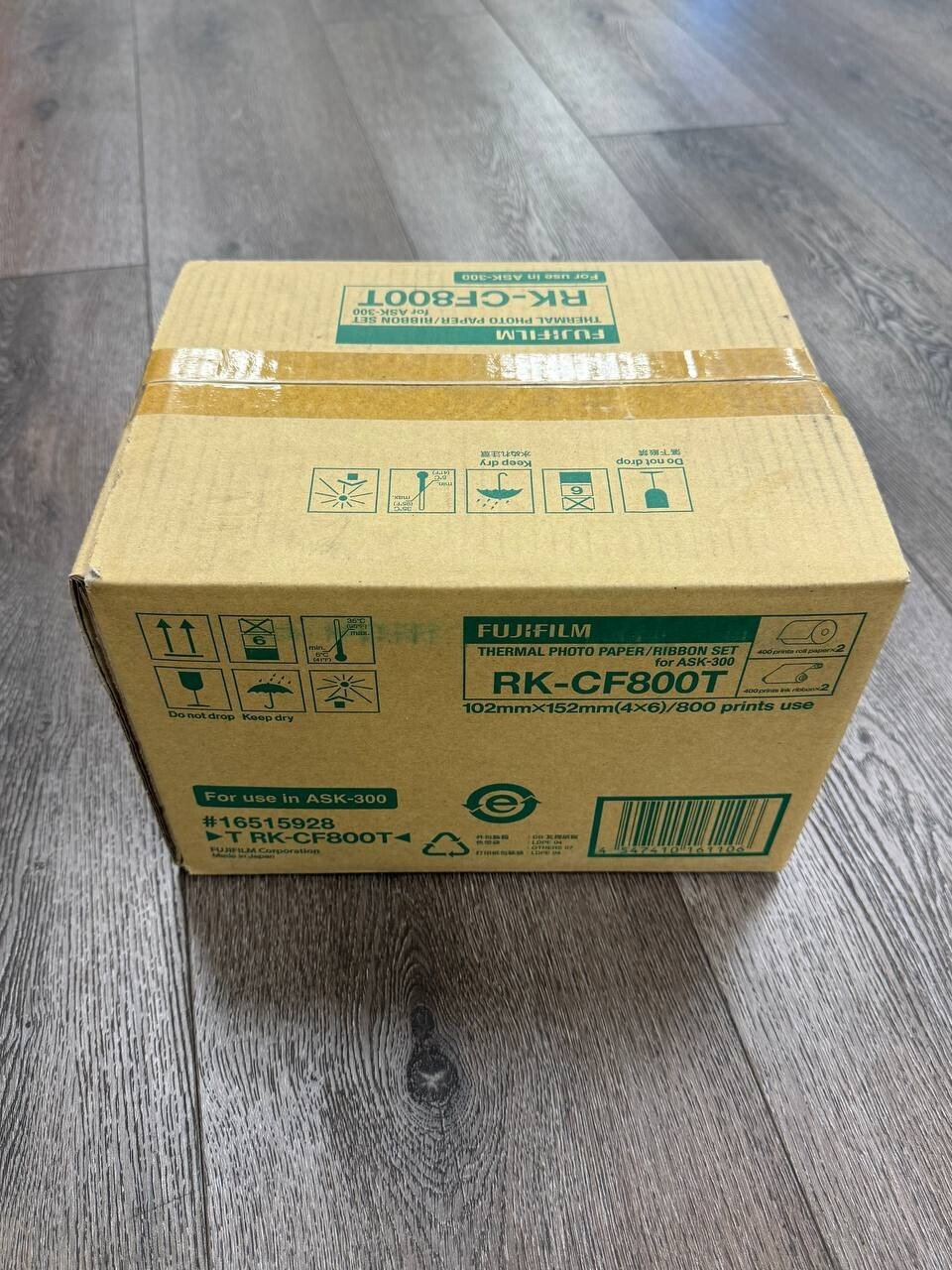 Description: New FUJIFILM T RK-CF800 4 x 6" Media Kit for Photo Booth Can be used For ASK-300 Digital Photo Printer Yield: 400 Prints per Roll Two Rolls and Ink Ribbons Included Keep on printing and printing with your ASK-300 Digital Photo Printer by picking up this T RK-CF800 4 x 6" Media Kit from FUJIFILM. Containing two rolls and two ink ribbons, this kit is able to produce a total of 800 prints, or 400 prints per roll. IF YOU HAVE ANY OTHER QUESTIONS OR INQUIRY, PLEASE SEND US AN MESSAGE DIRECTLY