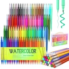 Our watercolor pen set uses high-quality ink, writing smoothly, durable and is the ideal choice for your artistic creation. The set contains 100 colors to meet your needs for different colors. Dual tip design, you can draw thick and thin lines, with strong flexibility, you can create a variety of works. The special pen barrel design allows you to create more comfortably. Perfect for Coloring, painting, doodling and more. Our watercolor pen set gives you an excellent creative experience. This is a set of watercolor pens perfect for artistic creation and can be given as gifts to relatives and friends, such as Christmas, Thanksgiving, birthdays, etc. The FUN LAVIE watercolor pen set contains 100 different colors to meet your needs for different colors.Odorless and non-toxic, please rest assured to use. Dual tip: The fine tip is about 0.4mm for outline, and the brush tip is about 1-6mm for coloring.You can easily create different styles of art works. Special barrel design: the thick barrel is round, and the thin barrel is triangular, making you more comfortable when painting. Our watercolor markers are very suitable for book coloring, graffiti, and painting. A perfect art set for family and friends, such as Christmas, birthday, Thanksgiving, etc.Easy to carry and convenient for your outdoor creation. Welcome to contact us with any questions. If you have any issues, we'll make it right.