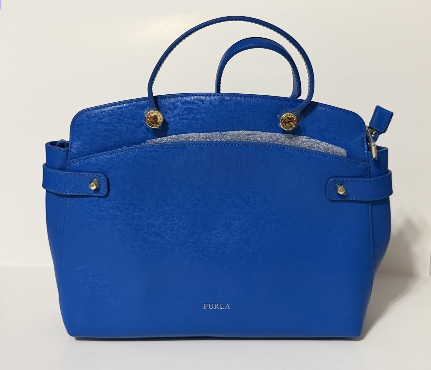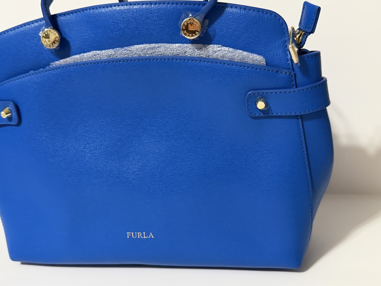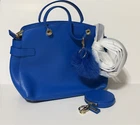 Hi and thank you for looking on my listings Im experienced online seller with over 20 years of sales experience but unfortunately, have to start all over again Please buy with confidence I ship fast and solve any problems quickly THANK YOU Absolutely gorgeous medium size handbag Purchased way back and never worn Includes coin bank and blue accessory added, dust bag 12 x 9.5 x 2.5" Thank you