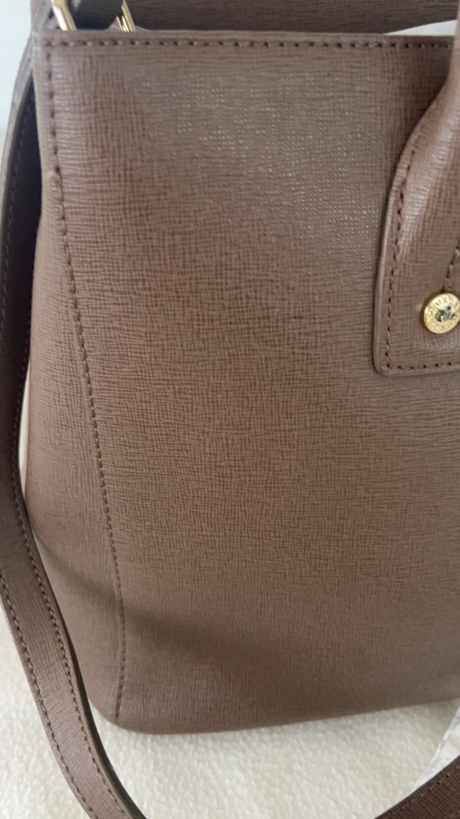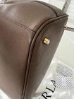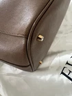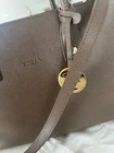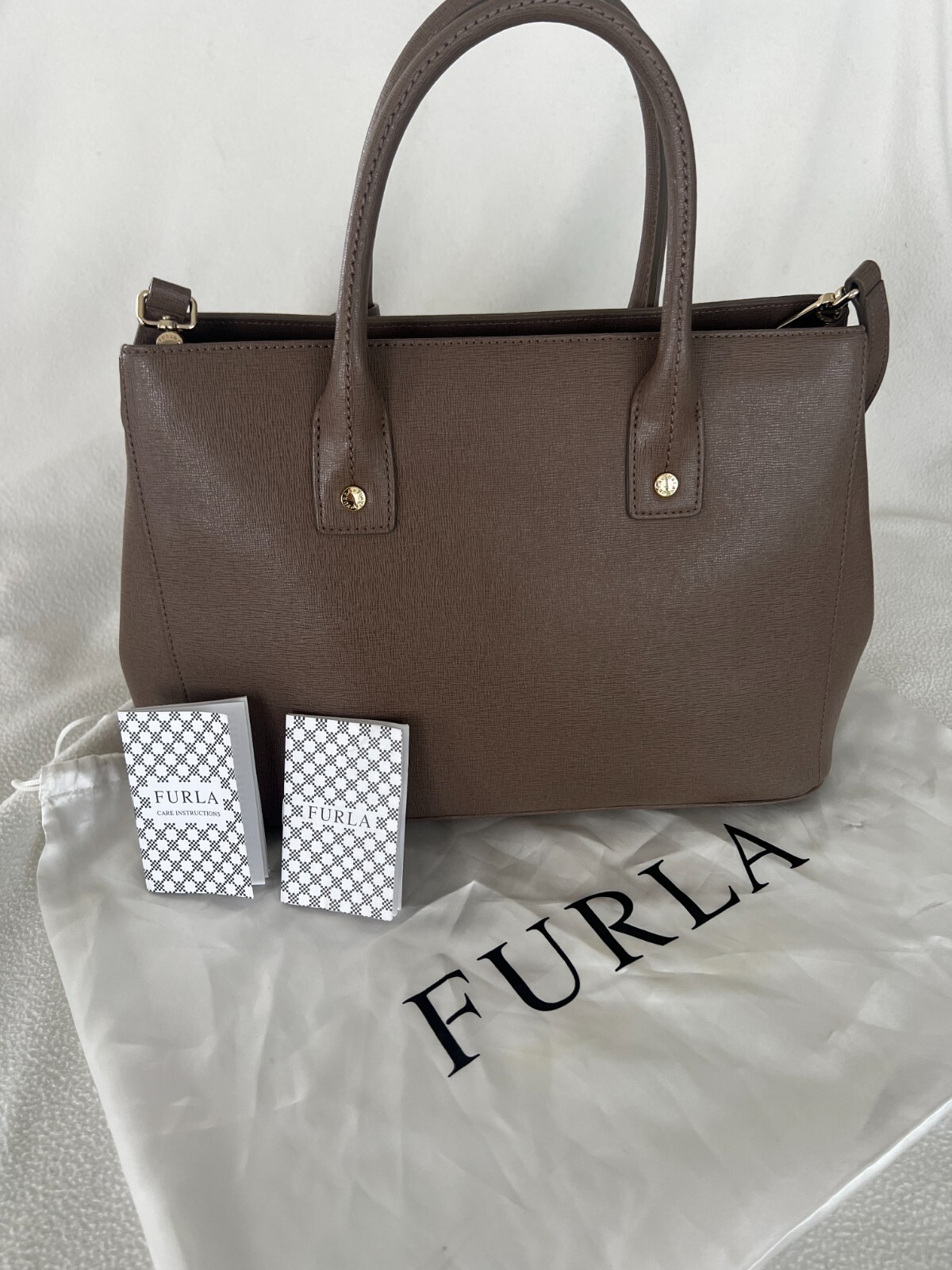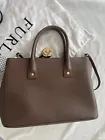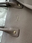 Furla is recognized for offering a high quality utility bag. Includes original dust bag, Furla care instruction and handbag booklets Beautiful clay grey color making it versatile and matching with variety of outfits. Made with grained leather making it very durable for every day use/ office or casual chic All gold hardware Furla logo hanging accessory Includes two interior slip pockets Bottom gold hardware pegs on each corner Original Removable shoulder strap with 13 inch drop Gold snap closure on both sides Magnetic top snap closure Double top handles One interior side zip pocket with furla logo zipper Canvas interior shows some signs of wear Dimensions width 13.5 inches length top to bottom 9inches not including handle height 5.5 inches opening width Please note all measurements by hand may very slightly Item is pre-owned but in overall great condition, Please inspect photos carefully for signs of wear on bottom edges and interior Handbag ships in a new box with interior tissue stuffing to maintain handbag shape and protected in a clear bag. Retail price $300