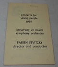 Fabien Sevitzky University of Miami 1965 Concerts for Young People Rare Program Measures approximately 6" x 9". 8 Pages including Covers. A name is written on the front cover in pencil. Staple has rusted. Item has creasing, discoloration and marks from age and storage. Please see photos for more information on condition and ask any questions you may have.