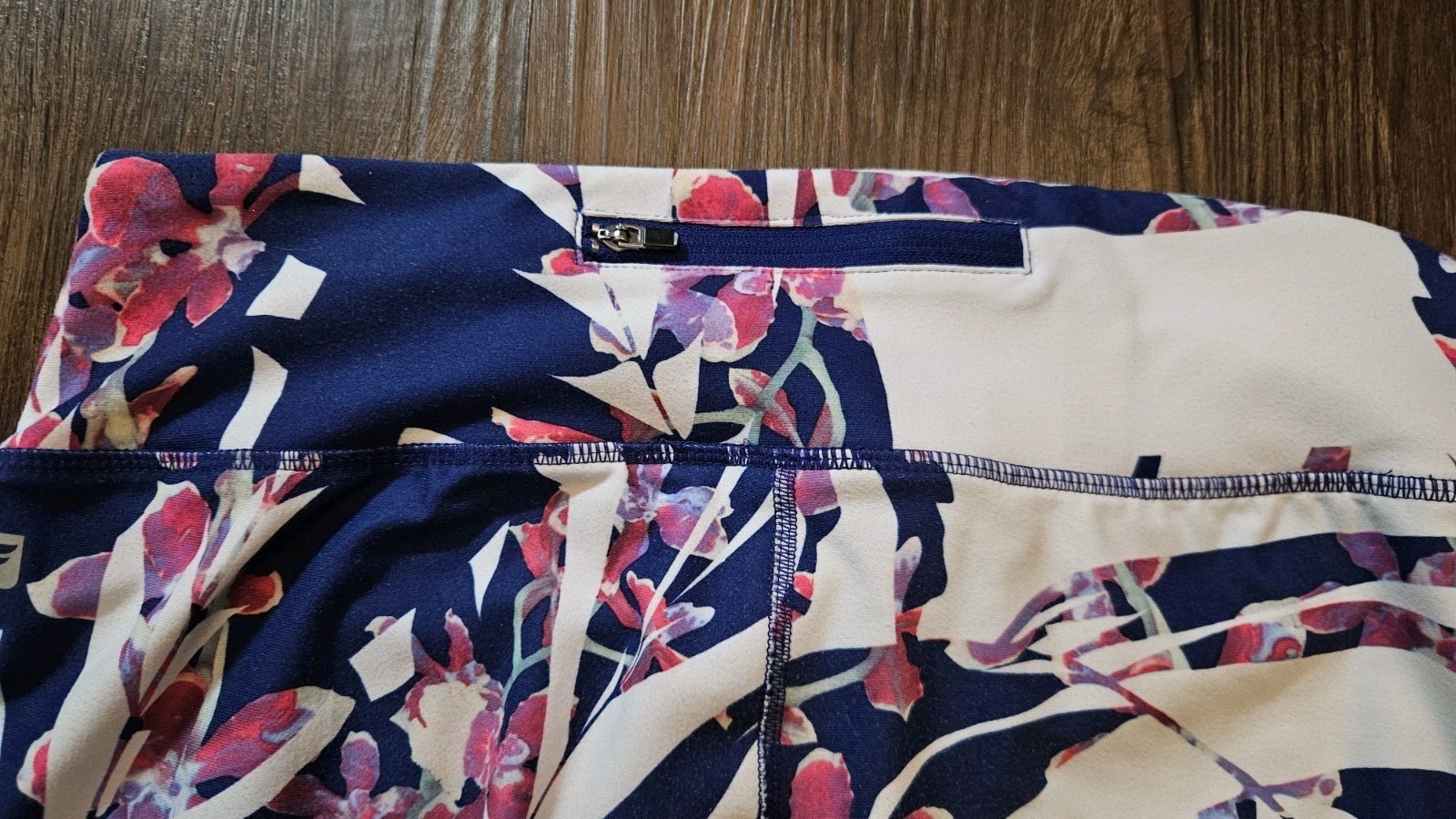 Elevate your workout wardrobe with these vibrant Fabletics Capri Leggings in a small size, featuring a beautiful floral pattern that will add a pop of color to your exercise ensemble. The blend of polyester and elastane materials ensures a comfortable stretch fit, allowing you full range of motion whether you're yoga stretching or jogging on the treadmill. With a convenient zip pocket, these leggings are not only stylish but also practical, keeping your small essentials secure during your fitness routine. The 20-inch inseam is perfect for a capri length, offering a cool and comfortable experience for your legs, which is great for gym training or any active pursuits.