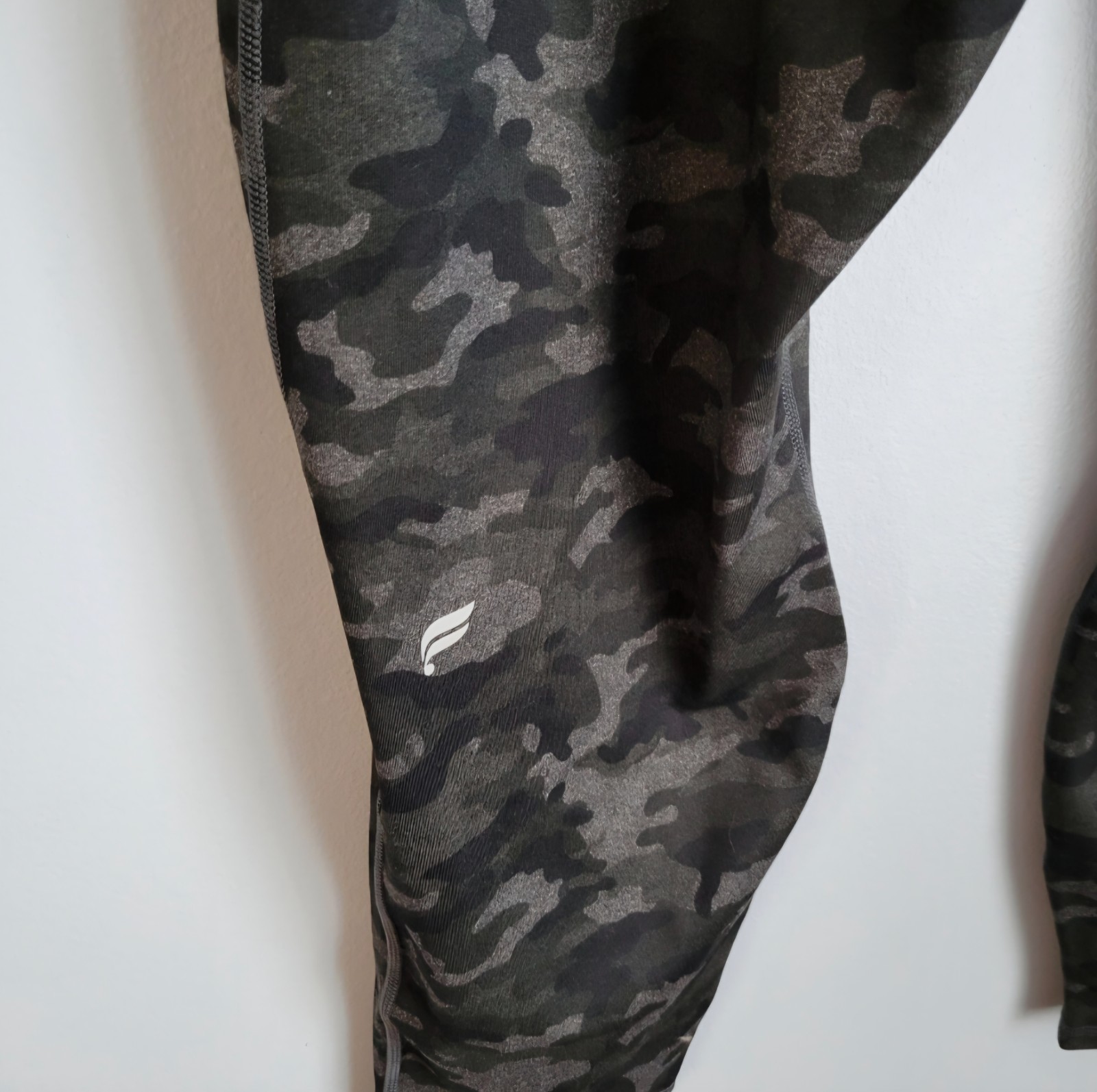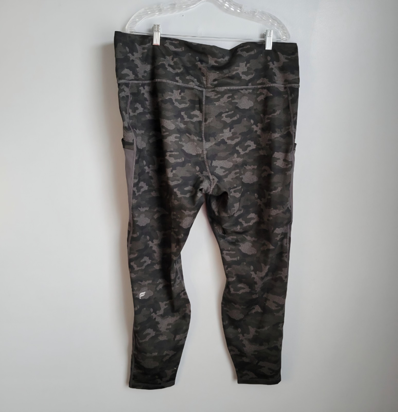 The Fabletics On The Go High Waisted Pocket Leggings 4X in Charcoal Camo are designed for active women looking for comfortable and stylish activewear. These leggings feature a camouflage pattern in gray, with a high-waisted design and skinny leg style for a flattering fit. Made from a blended fabric, they are machine washable and perfect for activities such as gym training, yoga, and running. The leggings also come with pockets for convenience, making them ideal for on-the-go workouts in the summer, fall, or spring seasons. Made by the popular brand Fabletics, these leggings offer both performance and athleisure style.