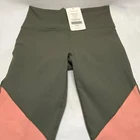Fabletics Zone High Waisted Leggings Women’s Medium 7/8 Pink Olive Green NWT These ladies leggings are brand new with tags, no noted flaws. Please see all photos as this is the exact garment you will receive. Measurements taken with item laying flat- waist is 14", length from high point of waist to bottom hem is 39", inseam is 23". Polyester/spandex blend, machine wash cold. Thanks for looking!