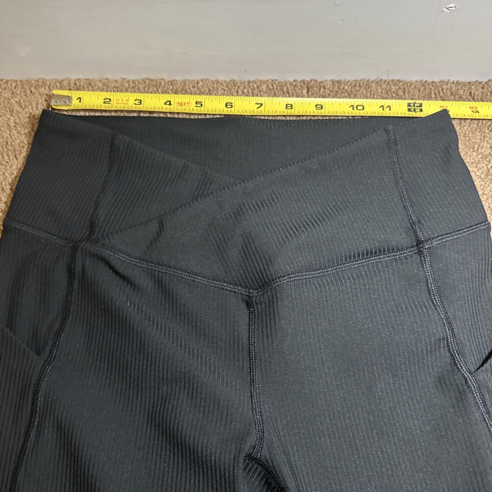 Fabletics Women’s Size Medium Leggings Black Ribbed Cross Twist Waist Ankle. Condition is Pre-owned - Excellent. Shipped with USPS Ground Advantage.