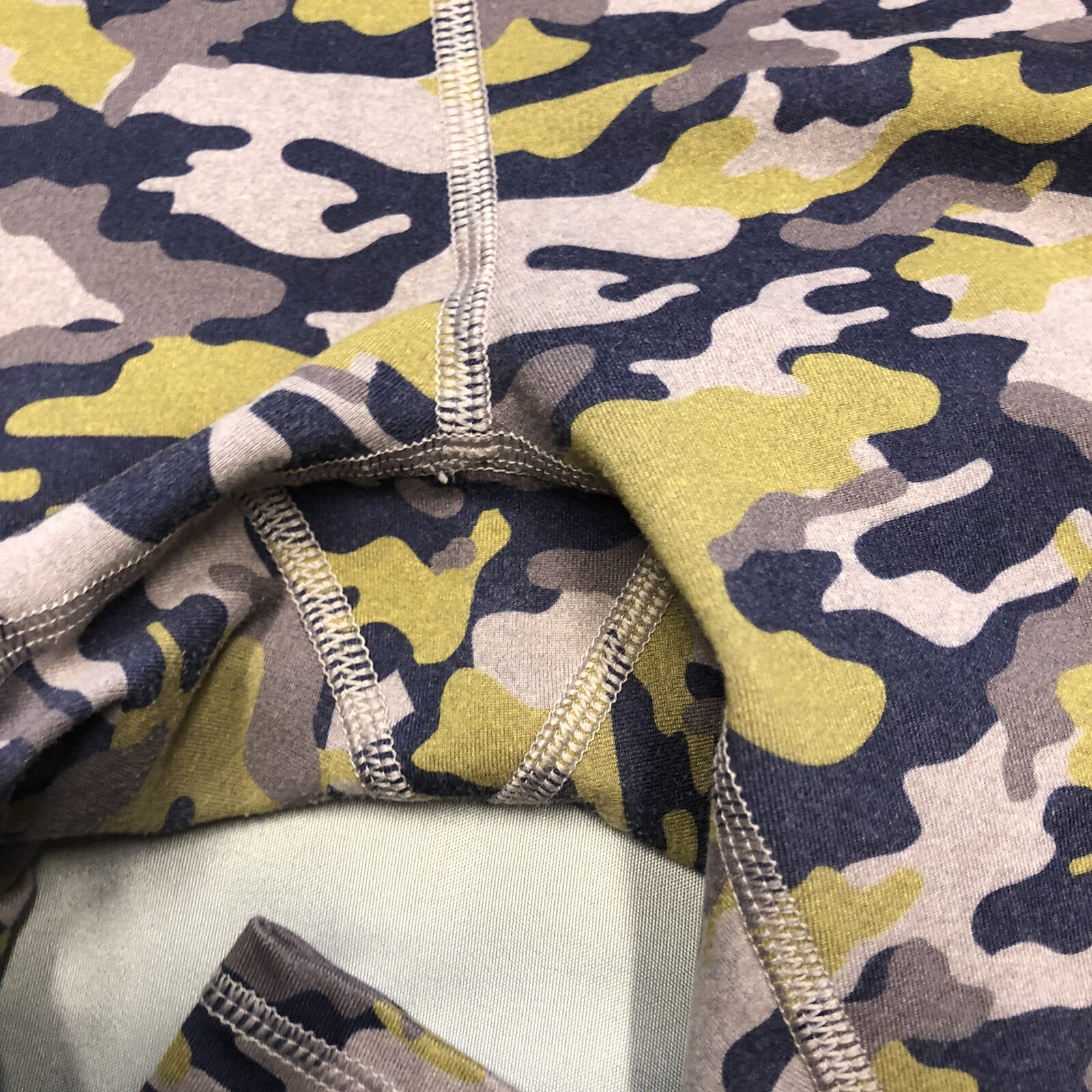 Fabletics Womens Purple Camo Full Length Mild Compression Leggings Sz M. Purple, lavender and mustard color blend Inner waist pocket No seam putter leg only inner 15” lying flat waist 28” inseam