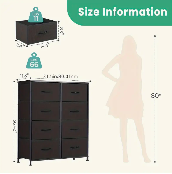 Fabric Drawer Dresser with 8 spacious drawers for ample storage Storage Chest Organizer Units to keep your space clutter-free Metal Frame for durability and stability Lightweight Furniture for easy moving and rearranging Versatile design for use in Living Room, Bedroom, or Bathroom Drawer Cabinet with Fabric Bins for a stylish touch Specification Mounting Type: Floor mount Special Features: Foldable Back Material Type: Alloy Steel Accessory: Multiple Components Material: Other material Mirror Shape: Other Shapes Power Supply: Use Without Electricity Applicable Age Group: 14+ Wether Independent: Yes Physical Weight: <30 Lbs