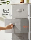 LARGE COMPACITY STORAGE: Pipishell fabric dresser tower with 3 separate drawers allows you to storage 10-15 T-shirts or dozens of pairs of socks in one drawer. Roomy drawer could keep household items organized, including clothes, toys, cosmetics, daily groceries, and towels. STURDY AND QUALITY CONSTRUCTION: Designed with a sturdy steel frame to offer stable support, Pipishell 3 drawer dresser storage tower has an end stop to prevent drawers from pulling out. Also, the stable tower feet can compensate for uneven floors. PRACTICAL AND PORTABLE CABINET: Lightweight organizer unit is designed with a solid wood board on top for added sturdiness and durability, you can move the dresser conveniently to anywhere in your room; Easy to assemble and disassemble, no worries when changing your house or apartment. RESTORE A TIDY HOME: Do you want to take up more sufficient storage space in the closet? Do you still look for an elegant storage cabinet by the bed? Do you want to pick up or drop items in the hallway when going out or coming home? Then Pipishell dresser storage towers are your best choice. CUSTOMER SATISFACTION SERVICE: Pipishell provides professional customer service before and after purchase. What you can get are a high-quality fabric dresser towers, sufficient assembly accessories, and friendly customer service.