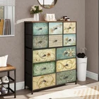 Dresser with Drawers for Bedroom Chest of Drawers Fabric Dresser for Closet,Nursery Entryway Hall Tree TV Stand for Living Room Retro Floral Pattern Drawers Wooden Top 【Original Design Retro Flower Pattern Fabric Drawers Dresser】The retro flower pattern on each drawer makes it a stand-out piece of furniture that is sure to catch the eye of anyone who enters the room. This dresser is designed to complement any existing home decor. It also adds a touch of charm and elegance to your room. 【Ample Storage Chest of Drawers】This beautiful dresser offers ample storage space with its spacious fabric drawers, the fabric drawers are easy to open and close, making it convenient to store and access all of your belongings,whether you need a place to store clothing, linens, or other household items, this drawer fabric dresser is the perfect choice. 【Premium Material and Handcraft】The dresser is crafted with high-quality iron frame with sturdy waterproof partical board top to ensure long-lasting durability and functionality.The non-woven synthetic fabric is breathable and harmless. 【User-Friendly Detail Design 】The four metal feet are equipped with height adjustable foot pads to protect your floors and designed for uneven floors.Plus, anti-tip accessory included to prevent accidents.Your family's safety is a top priority.This dresser is perfect for bedrooms, closets, entryways,bathroom,and living rooms. 【Easy to Assemble】Assembling the dresser is a breeze, thanks to the detailed instructions and all hardware included.If you have any issues, please contact us immediately, we will give you the best reply.Don't miss out on this stylish and practical addition to your home!