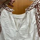 Stylish cream blouse with brown detailing. Perfect for versatile wear. Size large 51% cotton Keyhole closure in back