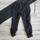 Good condition. A tried-and-true Faherty favorite, these elevated joggers feature all the classic details — a slim, relaxed fit, comfortable pull-on waistband and knit cuffs, and casual drape. But the real star is the fabric: crafted from a soft, just-stretchy-enough blend of linen, cotton, and other fibers and then specially dyed and washed for a vintage-inspired, lived-in look. Once you put these on, you won’t want to take them off...and honestly, you’ll never have to. Approximate measurements Waist 14 inches across Rise 11 inches Inseam 26 inches